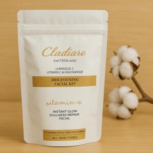 Cladiare Vitamin E+ Brightening Facial Kit is a 7-step skincare solution enriched with Vitamin E+, Niacinamide, Vitamin C and Aloe Vera that instantly reduces dullness, repairs uneven skin tone, and restores natural glow. It deeply hydrates, nourishes, and brightens skin while targeting dark spots and pigmentation. Safe for all skin types, this paraben-free kit gives you a salon-like radiant glow at home.