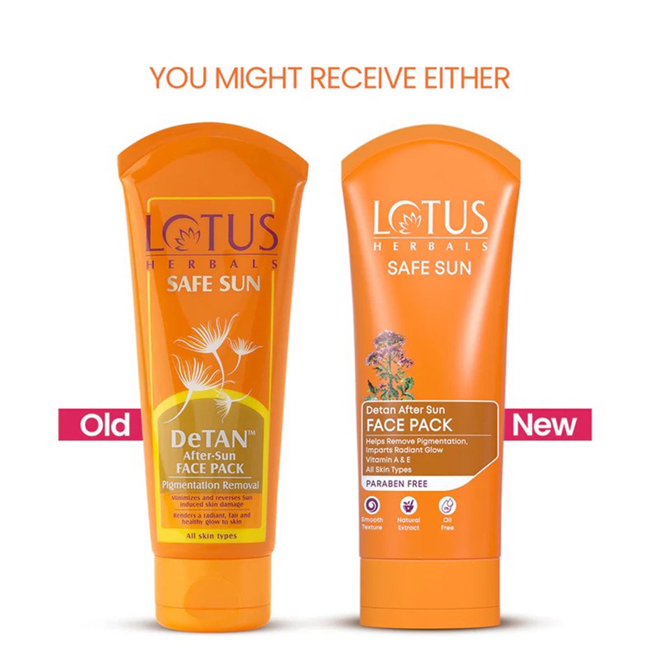 Lotus Herbals Safe Sun De-Tan After Sun Face Pack works exceptionally well to remove the skin’s undesired tan. It clears skin discolouration, unwanted dark spots and repairs the damage done by the harmful UVA/UVB rays. The Sun Face Pack helps remove pigmentation while neutralizing the sun damage, lightens overall complexion and evens out skin tone. The Face Pack can be applied twice a week or more depending on the sun exposure.