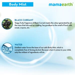 span>Don’t we all just love how pleasant babies smell? But sometimes when they end up making mess, spilling milk, food or drool, that pleasant fragrance gets masked. Don’t worry, I am here to help you. Hi! I am Mamaearth’s Bouncy Black Currant Body Mist for babies. The tangy & woody fragrance of Black Currant gives baby a fresh feeling & masks the odour of milk, drool, sweat & foo