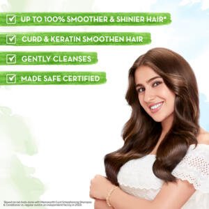 Crafted to deeply cleanse & nourish your locks, the Curd Smoothening Shampoo gives you up to 100% smoother & shinier hair* after every wash. Curd, a natural moisturizer and a go-to in every Indian household makes the hair softer, shinier & manageable. Keratin, a fibrous protein, strengthens the hair shaft & eliminates frizz. The result? Smoother, shinier, and healthier hair straight from your dreams!