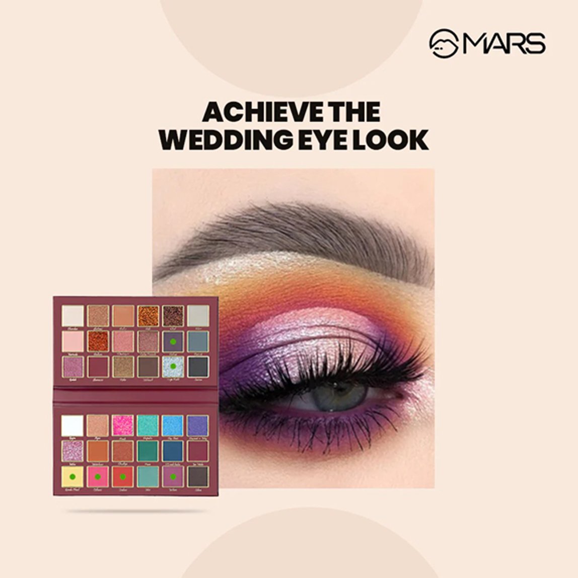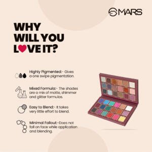 MARS 36 Color Eyeshadow Palette Jashan-e-Shringaar is the only eyeshadow palette you’ll need for weddings, parties, or your new journey as a newlywed. With 20 mattes, 10 shimmers, and 6 glitters, this palette lets you mix, match, and create endless eye looks—making you the showstopper at every celebration.