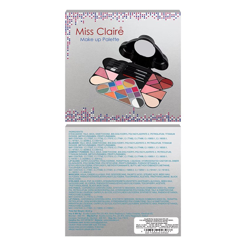 Additional Information: Presenting an entire colorful range of face, lips and eye cosmetics that enhance your beauty and amplify your daily make-up looks.Loved by Makeup fans across India, Miss Claire Cosmetics are of premier quality, trendy, affordable and are formulated using the finest ingredients that care for your skin.These are manufactured in accordance with European Standards.Choose from a huge range of Miss Claire makeup and beauty products right from Lipstick, Bronzers, Highlighters, Foundation, Eyeliners to concealers all available in highly pigmented formula and textures.Miss Claire makeup products are affordably priced, are long lasting and suit all skin tones and skin types.