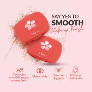 - Olivia’s Powder Compact is the ultimate match for all skin types. This powder compact makes the makeup look smooth and it does not clog pores. It is an oil-free powder that absorbs excess oil giving the skin a matte finish by improving the overall healthy look of the skin.