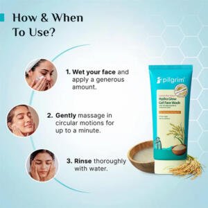 Discover your glass-skin glow with Pilgrim Korean Rice Water Hydra Glow Gel Face Wash. Powered by Korean Rice Water, Niacinamide, and Hyaluronic Acid, this gentle gel cleanser purifies the skin while delivering intense hydration and radiance. Korean Rice Water, a timeless Korean beauty secret, replenishes essential moisture and leaves skin fresh and bright. Niacinamide helps fade dark spots, refine texture, and balance excess oil, while Hyaluronic Acid plumps, smooths, and locks in long-lasting hydration. Gentle yet effective, it cleanses without stripping natural oils, revealing skin that feels soft, supple, and luminous every day