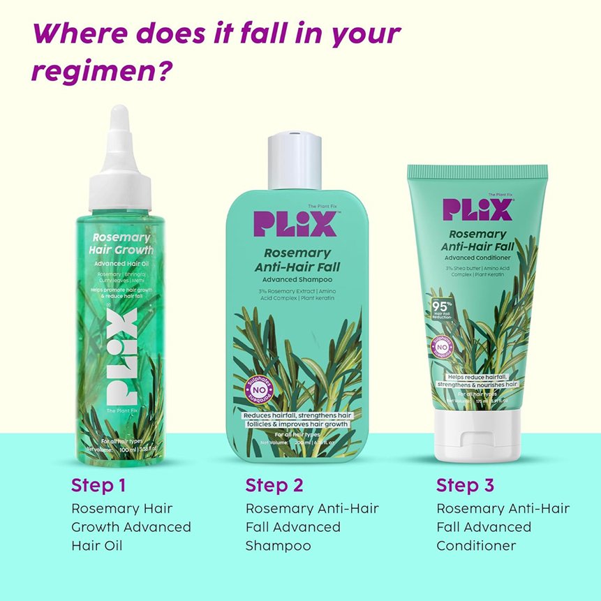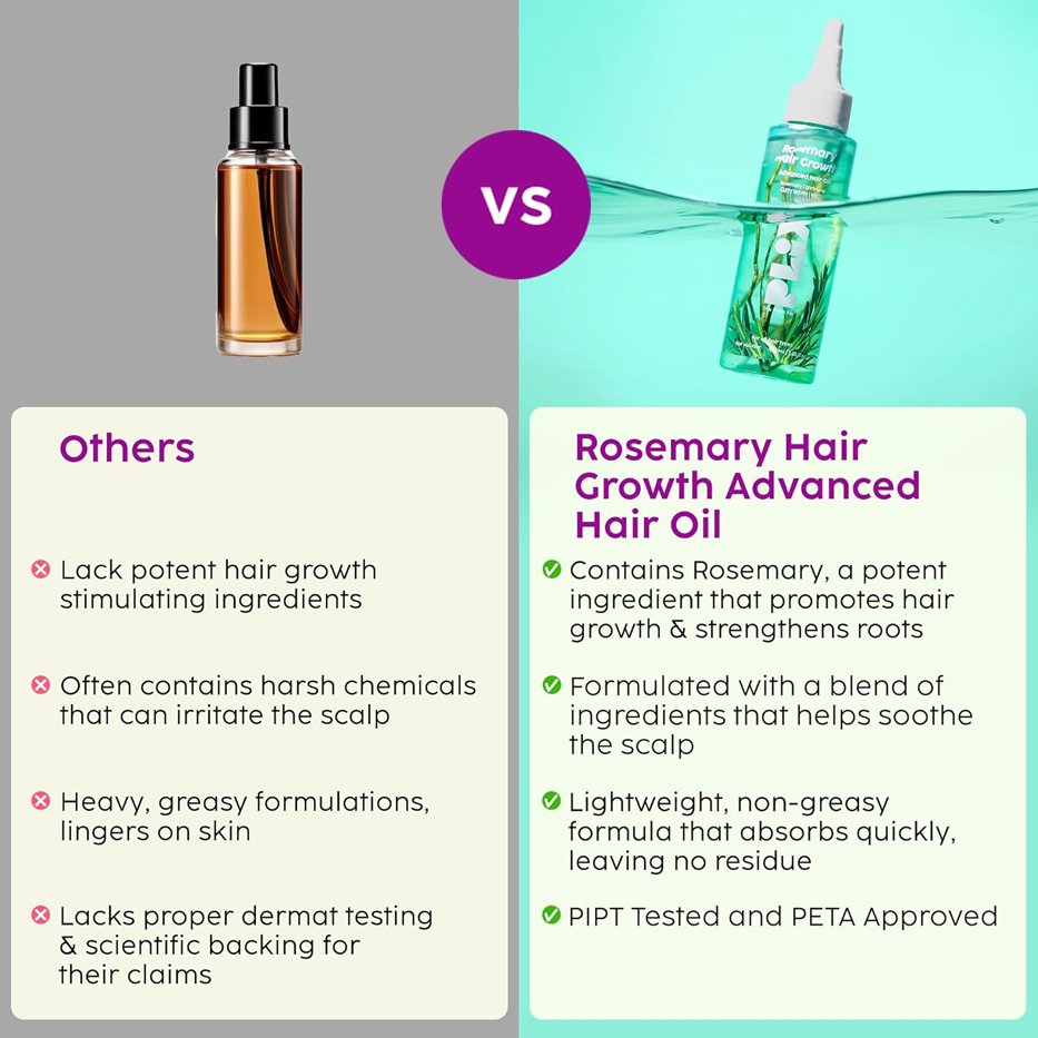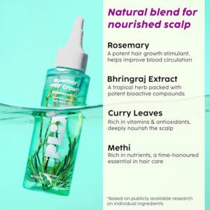 - Promotes hair growth Rosemary, rich in antioxidants like rosmarinic acid & carnosic acid, improves blood circulation to the scalp & help reduce hair fall by inhibiting DHT