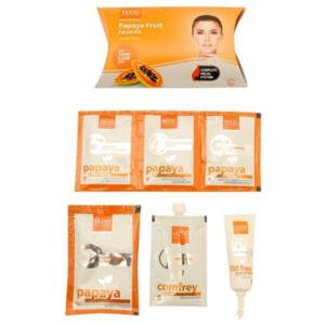 Papaya, often referred to as the fruit of the angels is a rich source of an enzyme called papain and vitamin A, which together help in breaking down inactive proteins and thereby sloughing off dead skin cells. VLCC Natural Sciences Salon Series Papaya Fruit Facial Kit helps hydrate the skin and maintain its oil balance. This is a combination of other fruits and vegetable extracts that helps to achieve a blemish-free and radiant complexion. So what are you waiting for? Buy this product at the best rate, right here!_x000D_